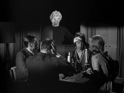 Gladys catches Samantha and her magic at work when she is rearranging pictures. Samantha convinces Gladys that she is the one doing the magic by ESP (extra sensory perception). Gladys goes crazy with the notion that she has "powers", so Samantha sets up a séance to scare her. Using her magic, Samantha creates ghosts and turns Abner into a pile of dust. Gladys swears to give up her "powers" to bring Abner back, and Samantha returns him to his original form.