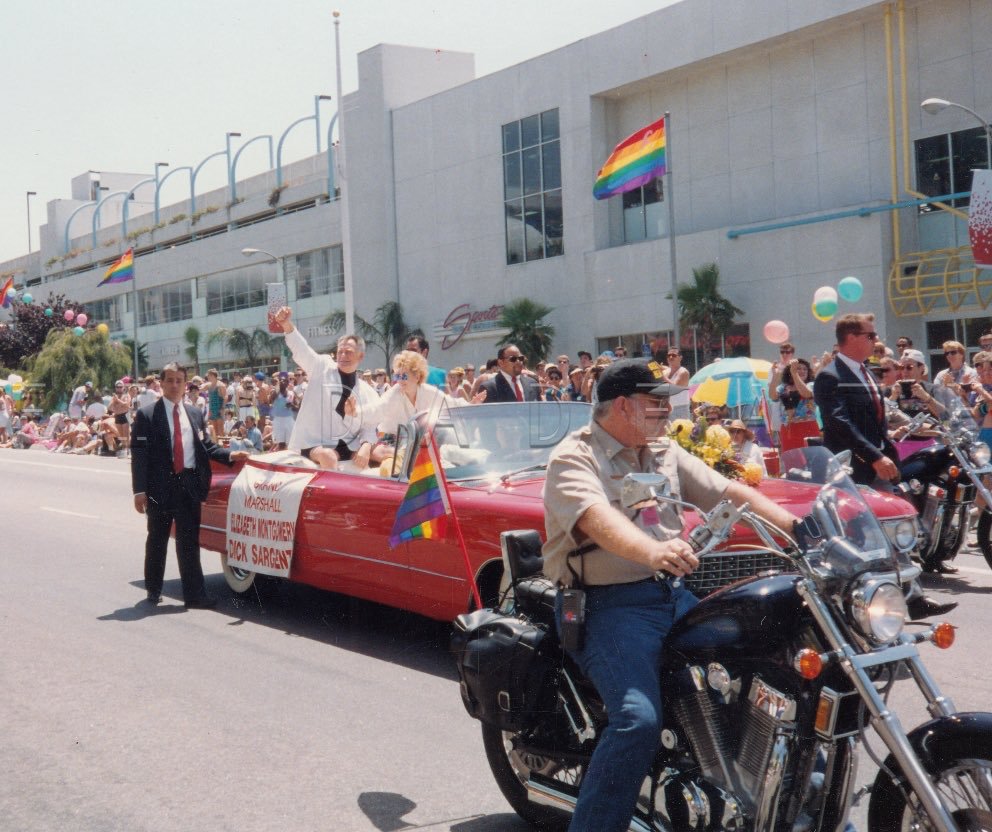 Grand Marshalls Dick Sargent and Elizabeth Montgomery at the Los Angeles Gay Pride Parade in 1992